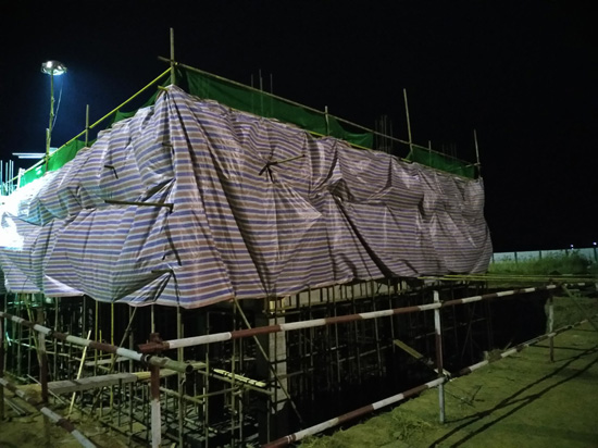 在施工现场各项施工有序进行,为了克服冬季施工环境恶劣对工程质量和安全的影响,项目部采取搭设暖棚、保暖加热等有效措施,保证施工进度和质量。