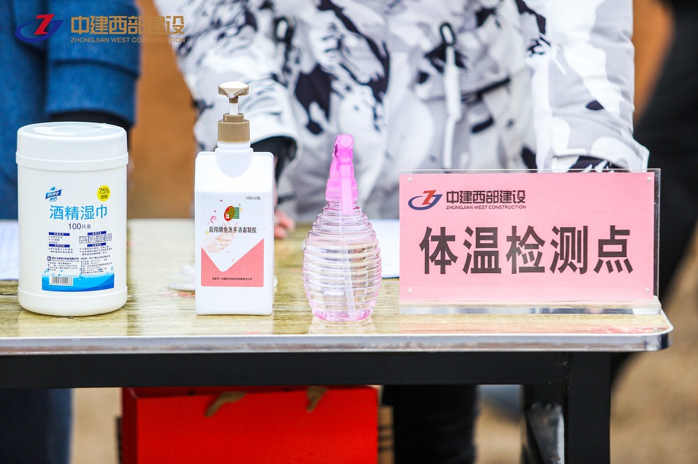 为配合此次开工典礼,防疫监管也在“配套”全面跟进,现场设置体温检测点,开工仪式前,进入现场人员都需佩戴口罩、测量体温、出示安康码,有序进场。