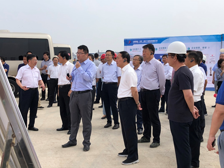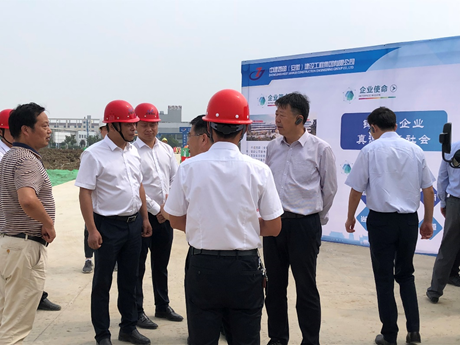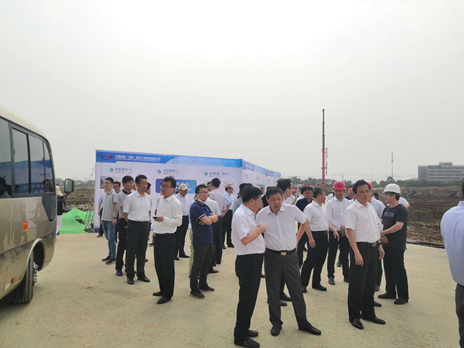 2020年6 月20 日上午,全省贯彻“六稳”重大项目集中开工现场推进会(蚌埠分会场)暨蚌埠市6月份重点项目开工动员会如期举行,9时20分,在市委书记汪莹纯的带领下,市领导、县区和市直部门主要负责同志乘车来到大富科技(蚌埠)研发总部项目。在大富科技安徽区域总经理张军华、同花顺官网总经理王越、多金集团副总经理童飞等人的陪同接待下,蚌埠市委书记汪莹纯、副书记、市长王诚等一行50多人莅临大富科技(蚌埠)研发总部项目现场参观考察,了解项目开工建设情况。项目负责人对项目设计、规划、工程进展等问题一一汇报。