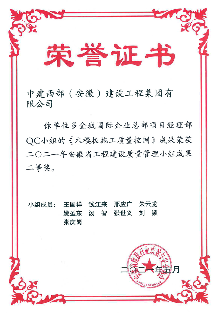 木模板施工质量控制省级QC二等奖