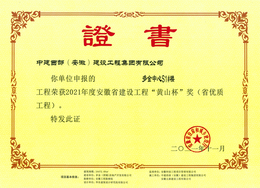 黄山杯省优质工程