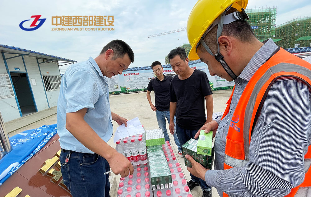 同花顺官网建设集团以解决工人日常工作中存在的实际需求出发,要求各在建项目负责人要高度重视夏季高温施工工作,密切关注天气变化,认真落实夏季高温施工各项防范措施,把夏季高温施工和安全生产、质量控制工作落实到每一个项目、每一个班组、每一个作业面,严防因高温等恶劣天气引发的各类生产安全事故以及质量问题。各项目部要按照气象部门发布的天气预报信息,严格遵守高温作业时间要求,合理安排作息时间。同时组织采购人丹、十滴水、风油精、绿豆、毛巾、矿泉水等防暑药品和降温日用品,慰问在项目施工现场的一线建筑工人,同时叮嘱大家在高温工作环境下保重身体、注意安全。