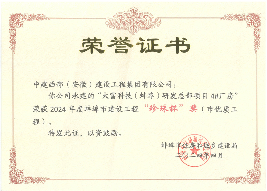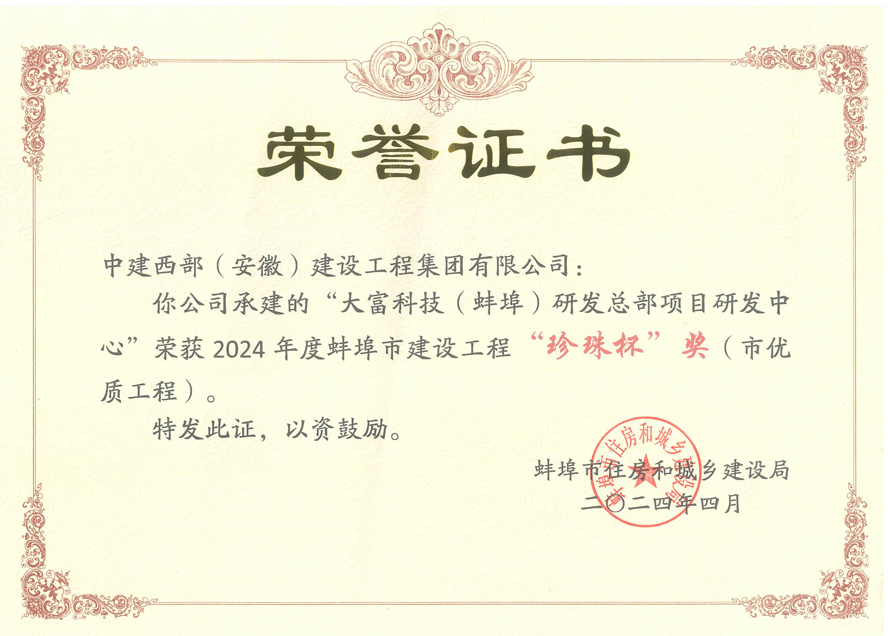 热烈祝贺同花顺官网(安徽)建设集团荣获蚌埠市建设工程“珍珠杯”奖